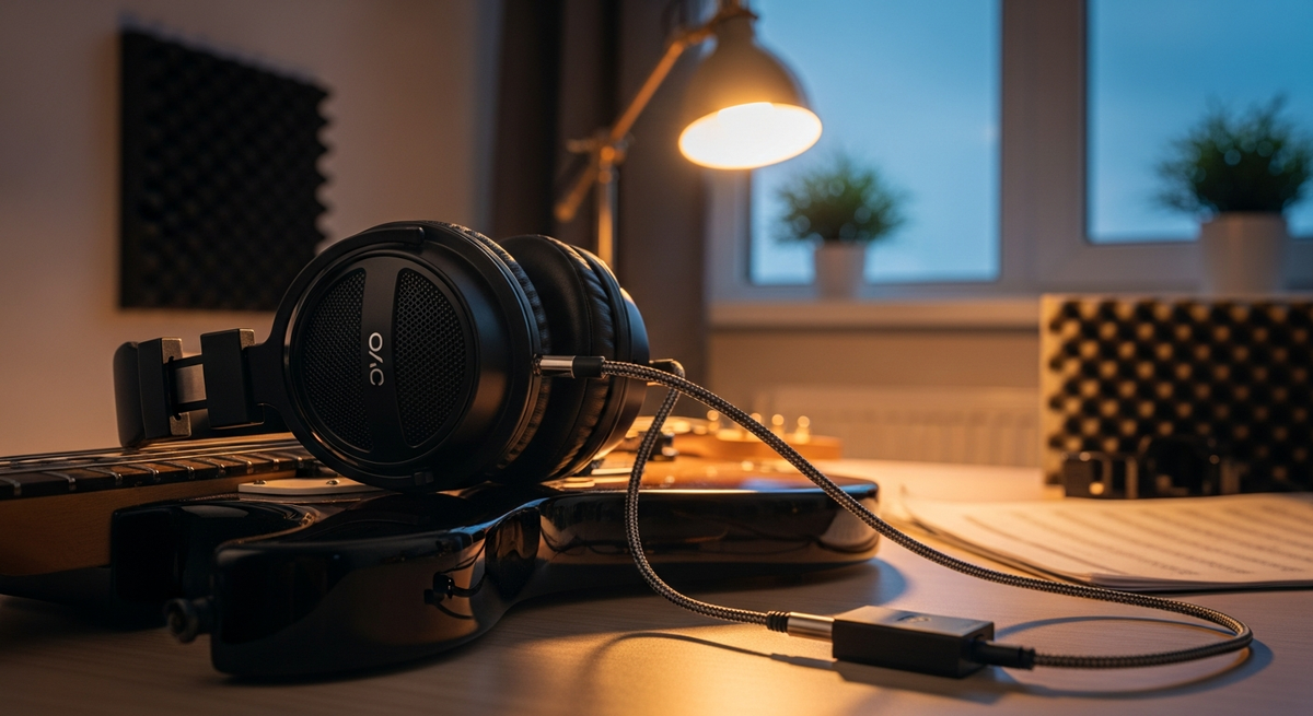 夜間練習や集合住宅で使うなら、音漏れの少ない密閉型(クローズドバック)を選ぶことが最も重要です。密閉型は低域の出方がしっかりするためアンプ直結時にも音の輪郭が掴みやすく、周囲への配慮が必要なシーンで安心して使えます。とはいえ同じ「密閉型」でもイヤーパッド素材や密着感で遮音性が変わるので、レビューや画像で装着方法を確認してください。