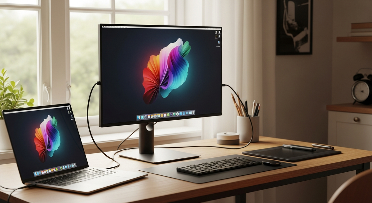 注意点としては、macOSではType‑C一本での二画面拡張に制限があること、HDMI接続時は別途給電が必要なこと。軽くて設置しやすい折りたたみスタンドやVESA対応の点を重視する人には特におすすめです。